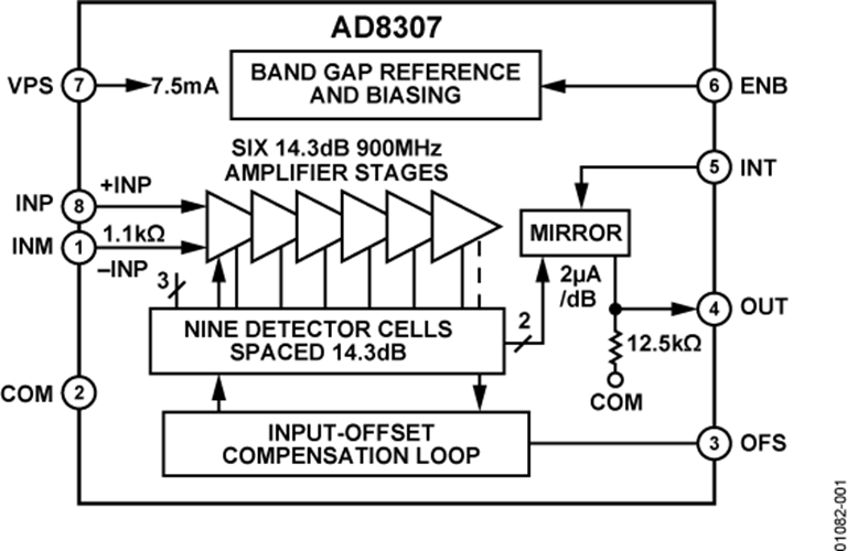 AD8307工做在-40°C至+ 85°C的實業工作溫度范圍之內,選取8引腳SOIC裝封形式和8引腳PDIP裝封形式。
