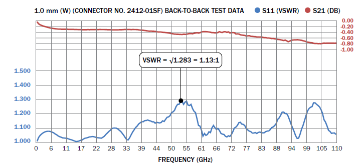 非常低駐波比DC to 110 GHz: 1.25:1 Max